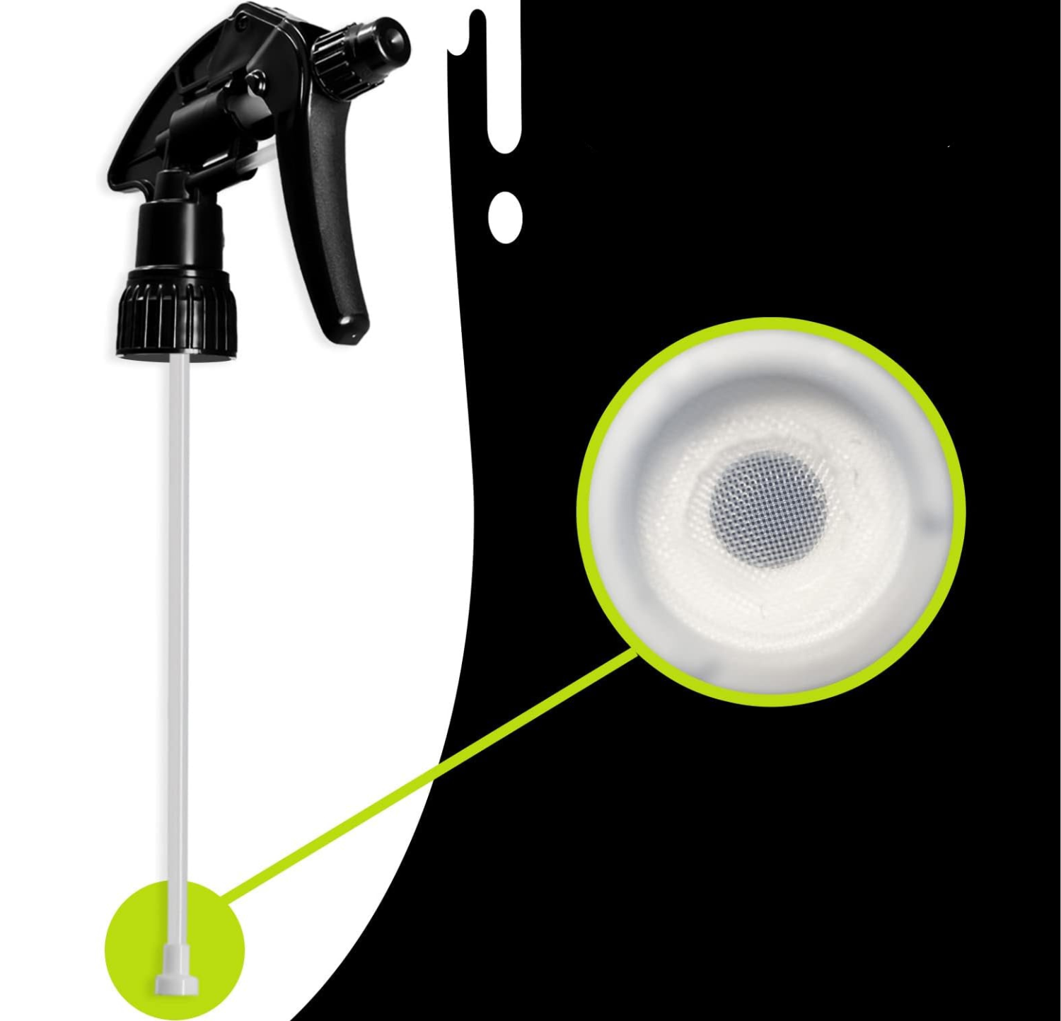 El cabezal de pulverización incluye un colador de plástico diseñado para prevenir obstrucciones. Este filtro garantiza un flujo constante y efectivo de líquido, evitando que impurezas o residuos interfieran en el funcionamiento del cabezal. Con esta característica, puedes estar seguro de que cada aplicación será suave y sin interrupciones, lo que optimiza tu tiempo y esfuerzo en la limpieza.